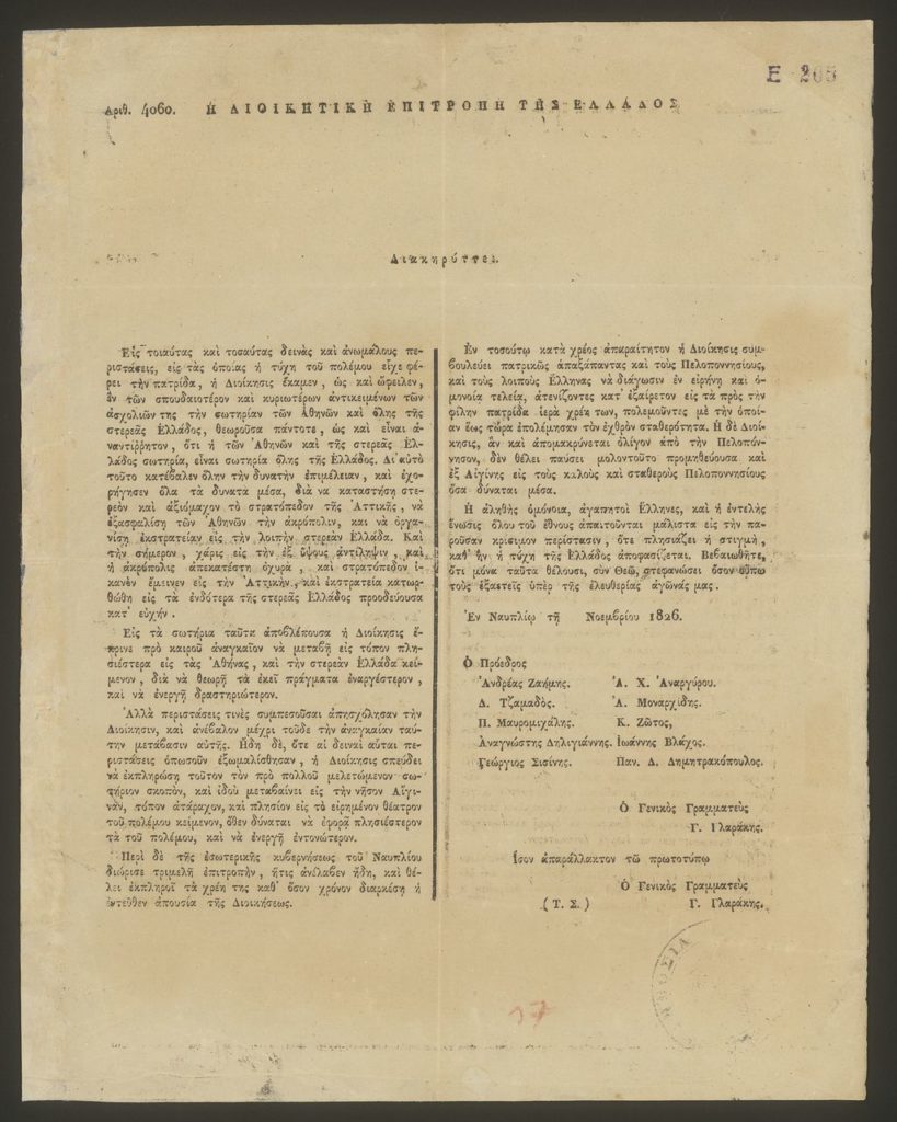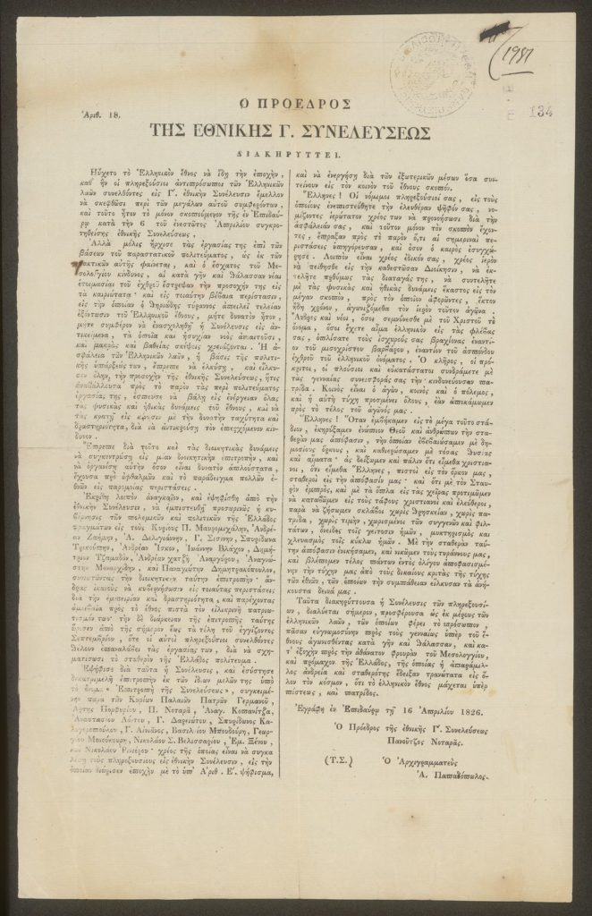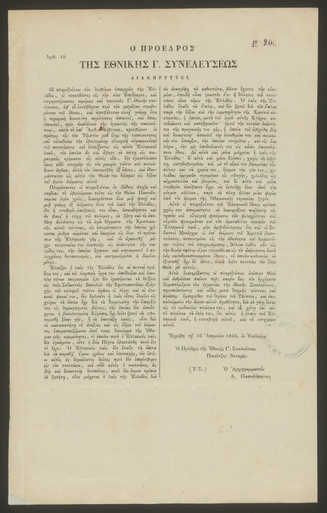 Το 1826 σημαδεύεται από γεγονότα καθοριστικής σημασίας για την έκβαση του Αγώνα. Το Πρωτόκολλο της Πετρούπολης υπογράφθηκε τον Απρίλιο του 1826 από τη Μεγάλη Βρετανία και τη Ρωσία και προέβλεπε τη μεσολάβηση των δύο χωρών μεταξύ των επαναστατημένων Ελλήνων και της Υψηλής Πύλης με σκοπό τη δημιουργία αυτόνομου ελληνικού κράτους, φόρου υποτελούς στον Σουλτάνο. Τον ίδιο μήνα, η πτώση του Μεσολογγίου αναζωπύρωσε το φιλελληνικό ενδιαφέρον για τον Αγώνα των Ελλήνων σε Ευρώπη και Αμερική. Εξίσου σημαντικές ήταν και οι εξελίξεις στο επίπεδο των μαχών: ο Ιμπραήμ συνεχίζοντας την εκστρατεία του στην Πελοπόννησο επιτέθηκε στη Μάνη και απέτυχε να την καταλάβει ενώ ο Κιουταχής ξεκίνησε την πολιορκία της Ακρόπολης στο πλαίσιο των επιχειρήσεων του στη Στερεά Ελλάδα. Στα τέλη της χρονιάς εκείνης η νίκη του Καραϊσκάκη στη μάχη της Αράχωβας, η οποία διήρκεσε από τις 14 έως τις 23 Νοεμβρίου, αναπτέρωσε τις ελπίδες των Ελλήνων.
